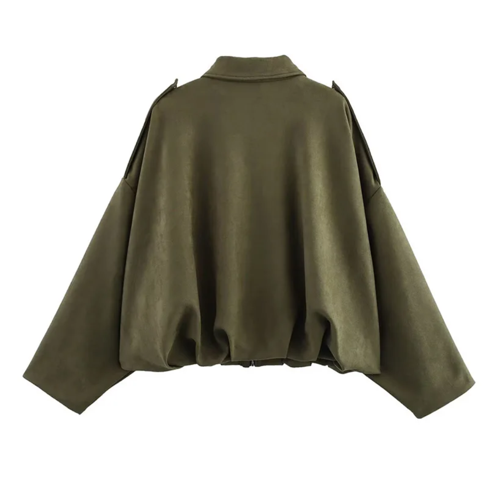 Ge din garderob en trendig och tidlös uppdatering med denna vintageinspirerade bomberjacka. Den lösa passformen ger en avslappnad känsla, samtidigt som den eleganta designen gör att den passar lika bra till vardags som till mer uppklädda tillfällen.